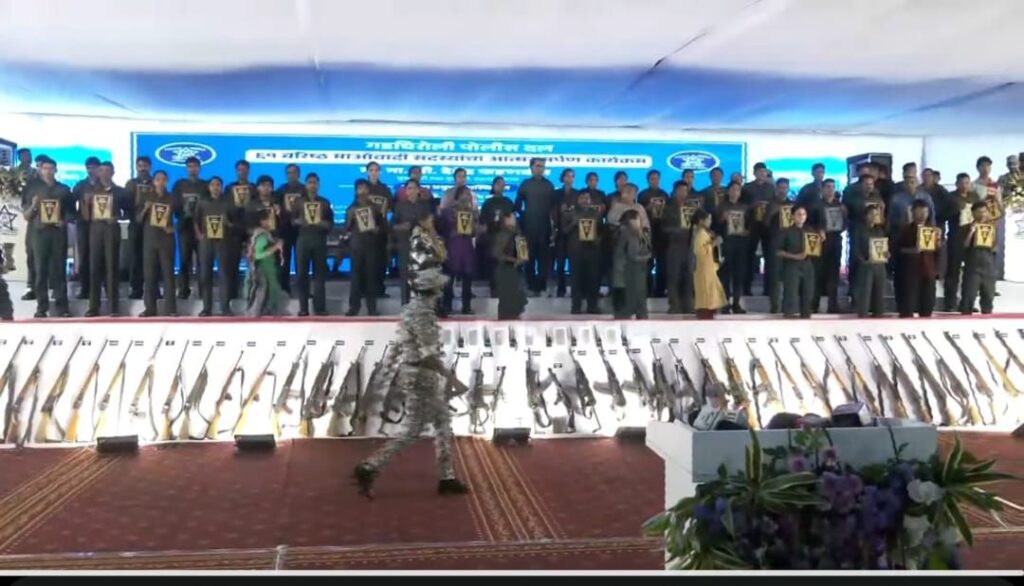 छत्तीसगढ़ कै पड़ोसी राज्य महाराष्ट्र गढ़चिरौली में मोजुल्ला वेणुगापाल राव उर्फ भूपत्ति उर्फ सोनूदादा,उर्फ अभय समेत 61 नक्सली ने महाराष्ट्र के मुख्यमंत्री देवेंद्र फडणवीस के सामने हथियार सहिंत आत्मसमर्पण किया है।
