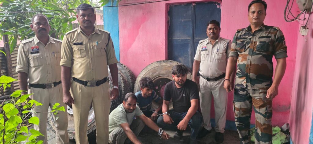रायगढ़, 7 अक्टूबर । पुलिस अधीक्षक श्री दिव्यांग पटेल के दिशा-निर्देशन और नगर पुलिस अधीक्षक श्री मयंक मिश्रा के मार्गदर्शन पर जूटमिल पुलिस ने ट्रेलर से टायर चोरी के मामले में बड़ी सफलता हासिल की है। पुलिस ने चोरी किए गए टायर खरीदने वाले चार आरोपियों को गिरफ्तार कर रिमांड पर जेल भेज दिया है।