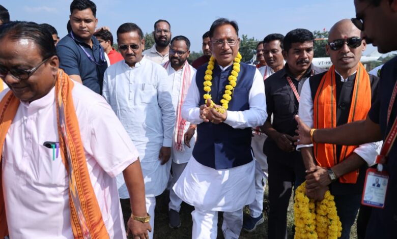 मुख्यमंत्री विष्णुदेव साय लैलूंगा के सिरकीनारा स्कूल ग्राउण्ड हेलीपैड पहुंचे, किया गया आत्मीय स्वागत