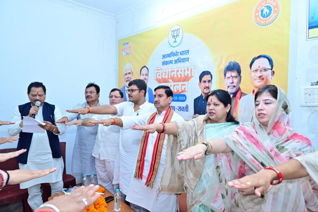 जिला भाजपा कार्यालय, शक्ति में आयोजित “आत्मनिर्भर भारत संकल्प अभियान” विधानसभा सम्मेलन में भाग लिया। उन्होंने कार्यकर्ताओं को संबोधित करते हुए ‘लोकल से वोकल’ की दिशा में काम करने का आह्वान किया।