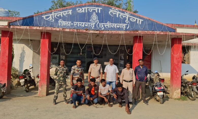 घटना की गंभीरता को देखते हुए पुलिस अधीक्षक रायगढ़ श्री दिव्यांग पटेल लैलूंगा पहुंचे। उनके निर्देशन एवं एसडीओपी धरमजयगढ़ श्री सिद्दांत तिवारी के मार्गदर्शन में थाना लैलूंगा, घरघोड़ा और कापू पुलिस की संयुक्त टीम गठित कर आरोपियों की पतासाजी एवं गिरफ्तारी हेतु लगाया गया। संयुक्त टीम द्वारा तत्परता से कार्यवाही करते हुए महज 12 घंटे के भीतर चारों आरोपियों को गिरफ्तार कर लिया गया तथा आरोपियों की पहचान कार्यवाही बाद आरोपियों के मेमोरेंडम पर घटना में प्रयुक्त दो मोटरसाइकिलों को जब्त किया गया है। गिरफ्तार आरोपियों को थाना लैलूंगा के अपराध क्रमांक 292/2025 धारा 70 (2), 61 (2) (क), 115 (2) बी.एन.एस. में आज रिमांड पर भेजा गया है ।