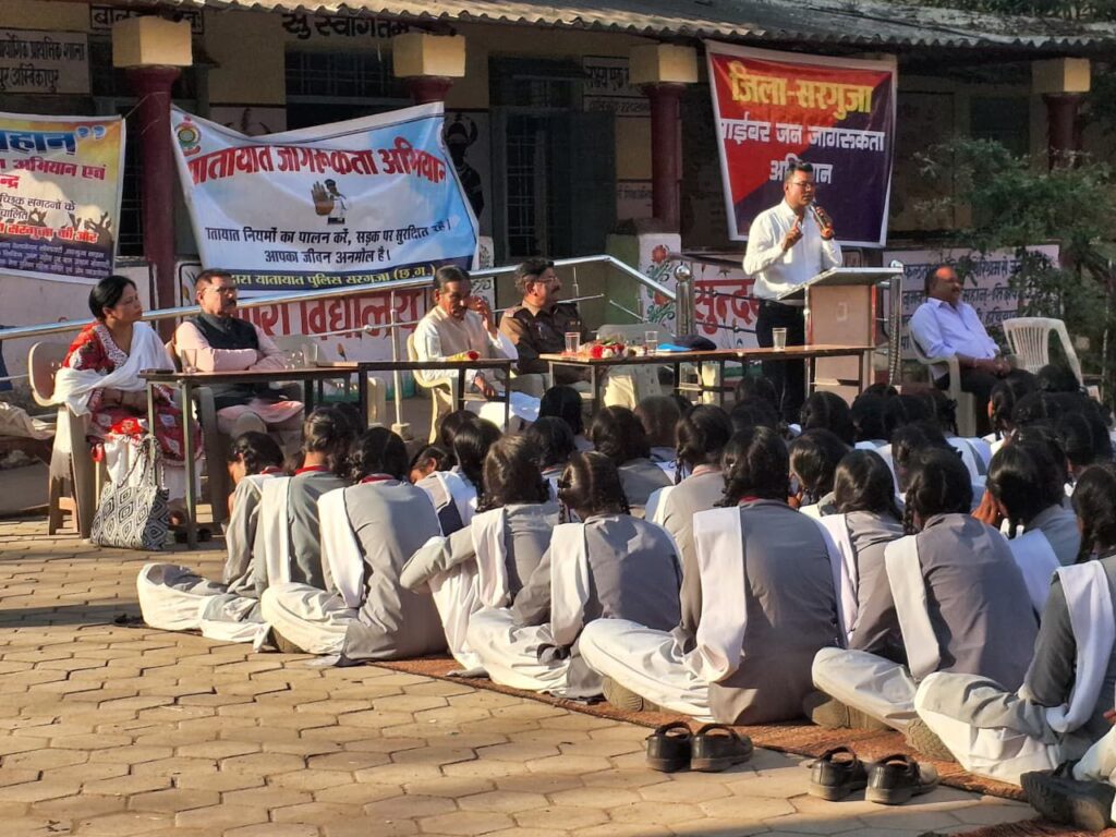 सरगुजा पुलिस द्वारा विभिन्न थाना/चौकी अंतर्गत यातायात एवं साइबर जागरूकता कार्यक्रम किया गया आयोजित
