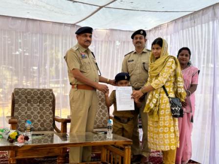 स्व. आरक्षक विद्यानंद ठाकुर की पत्नि की उपस्थिति में उनके पुत्र को बाल आरक्षक के पद में प्रदाय किया गया अनुकंपा नियुक्ति