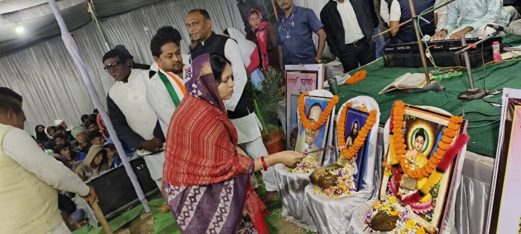 सारंगढ़। ग्राम बरभांठा अ में परम् पूज्य बाबा गुरु घासीदास जी की 5 दिवसीय जयंती समारोह बड़े ही श्रद्धा और उत्साह के साथ मनाया गया। इस अवसर पर मुख्य अतिथि के रूप में सारंगढ़ विधायक श्रीमती उत्तरी जांगड़े शामिल हुईं। विधायक ने समारोह स्थल पर 2.50 लाख रुपये की लागत से बनने वाले रंगमंच निर्माण कार्य का भूमिपूजन किया तथा ग्रामवासियों की मांग पर 5 लाख रुपये के सामुदायिक भवन निर्माण की घोषणा की।