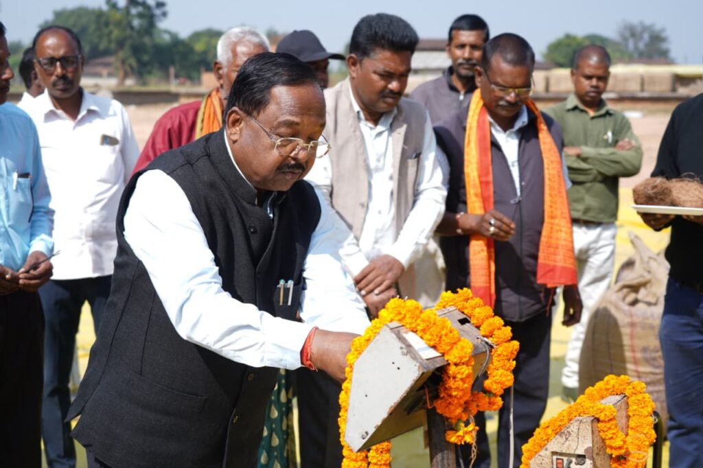 कृषि मंत्री नेताम ने डौरा-कोचली खरीदी केंद्र में धान खरीदी का शुभारंभ किया