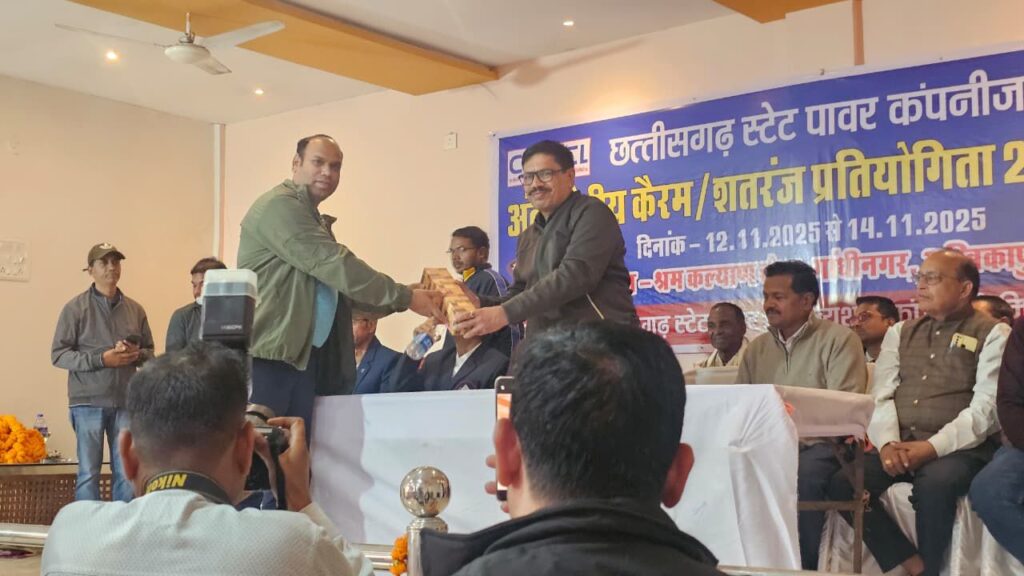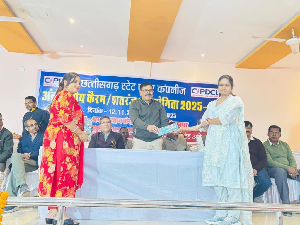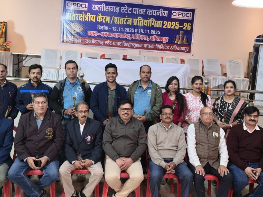 छत्तीसगढ़ स्टेट पावर कंपनी अंतरक्षेत्रीय कैरम और शतरंज प्रतियोगिता 2025-26 का समापन अंबिकापुर के कल्याण भवन गांधीनगर में किया गया। समापन समारोह के मुख्य अतिथि अंबिकापुर क्षेत्र के मुख्य अभियंता श्री यशवंत शिलेदार, अध्यक्ष अतिरिक्त मुख्य अभियंता श्री आवेदन कुजूर एवं विशिष्ट अतिथिद्वय अधीक्षण अभियंता श्री के एन सिंह और श्री एस पी कुमार ने अपने कर कमलों से विजेताओं को पुरस्कार वितरित किये। इस अवसर पर आमंत्रित अतिथि के रूप में छत्तीसगढ़ प्रदेश कैरम एसोसिएशन के जनरल सेक्रेटरी श्री विजय कुमार एवं नेशनल रेफरी श्री आलोक कुमार गुहा, शतरंज रेफरी शेष रतन जायसवाल सहित कार्यपालन अभियंता कामेंद्र सिंह जे पी राजवाड़े भी मंचासीन रहे।