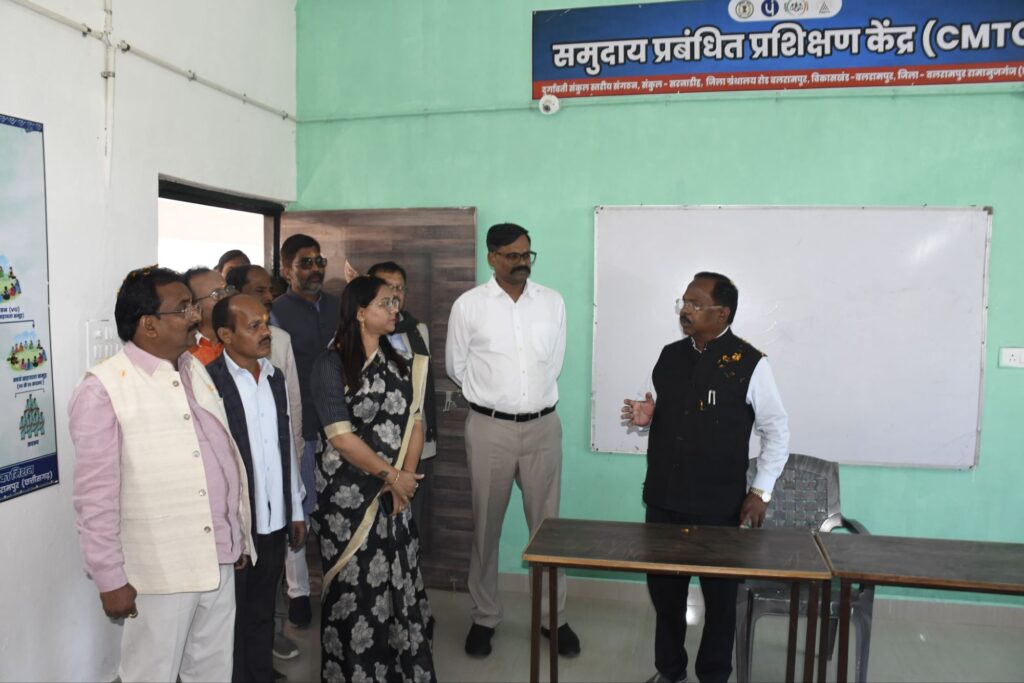 बलरामपुर,15 नवंबर 2025/ कृषि मंत्री श्री नेताम ने ग्रामीण स्वरोजगार प्रशिक्षण केंद्र (आरसेटी), संगवारी जेंडर संसाधन केंद्र (जीआरसी) तथा समुदाय प्रबंधित ट्रेनिंग सेंटर (सीएमसीटी) का उद्घाटन किया। मंत्री श्री नेताम ने केंद्र के प्रशिक्षण कक्षों, शयनकक्ष, भोजनकक्ष, रसोईकक्ष का बारीकी से अवलोकन किया और संचालित गतिविधियों की जानकारी ली।