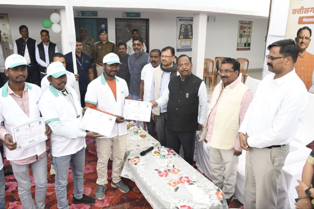 कार्यक्रम के अंत में मंत्री श्री नेताम ने 10 चयनित व्यक्तियों को राजमिस्त्री प्रशिक्षण, बीमा सखी प्रशिक्षण सहित अन्य कौशलों के प्रमाण पत्र वितरित किया।