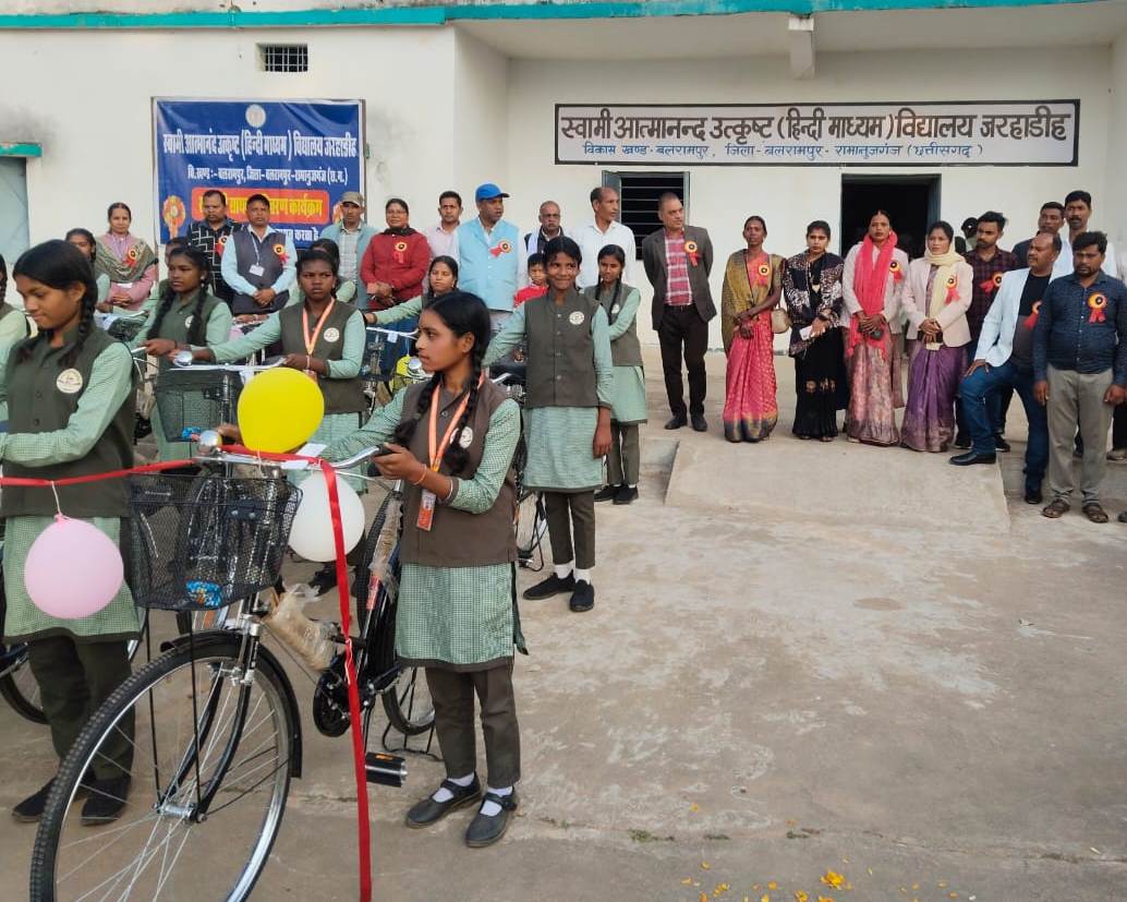 इसी कड़ी में स्वामी आत्मानंद उत्कृष्ट हिन्दी माध्यम विद्यालय जरहाडीह में सरस्वती सायकल योजना के तहत 61 बालिकाओं को सायकल वितरण किया गया।