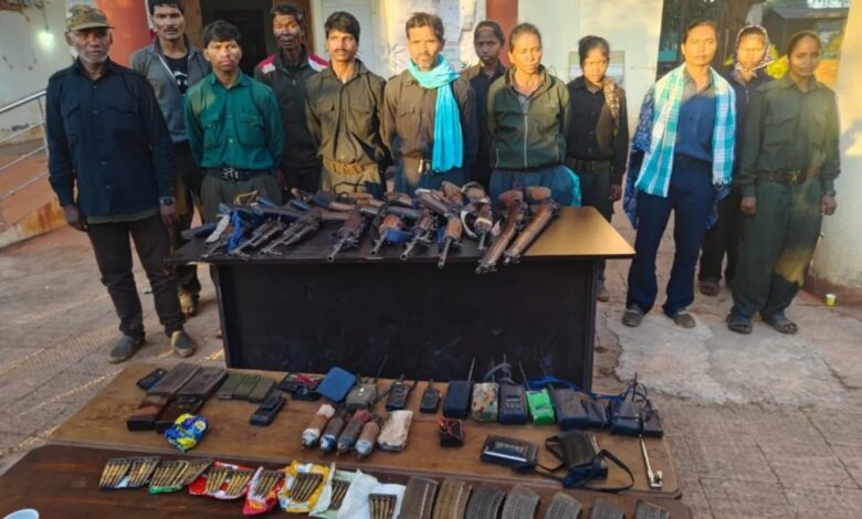 “CG नक्सली सरेंडर: AK-47 और इंसास सहित 12 हथियारबंद नक्सली पुलिस के समक्ष समर्पित”