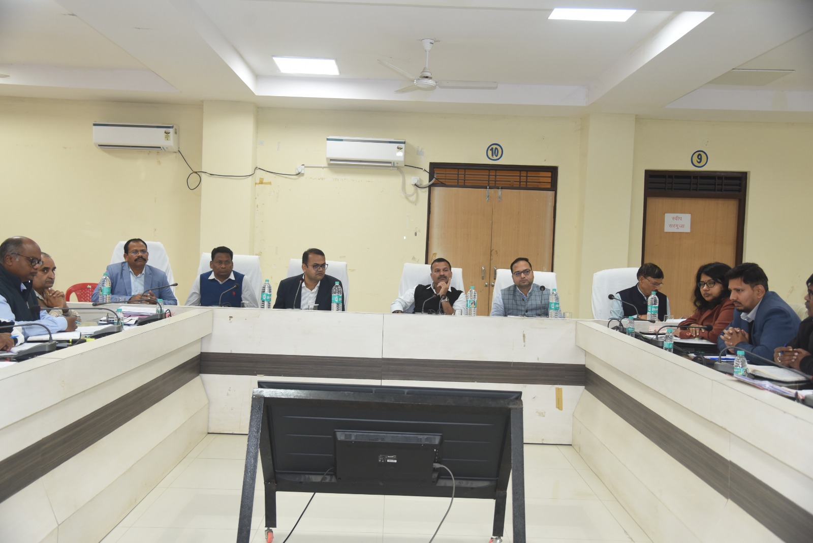 अंबिकापुर 9 दिसंबर2025/कलेक्टर श्री विलास भोसकर की अध्यक्षता में मंगलवार को जिला कलेक्टरेट सभाकक्ष में साप्ताहिक समय सीमा की बैठक सम्पन्न हुई। बैठक की शुरुआत राष्ट्रगीत एवं राष्ट्रगान के साथ हुई, समस्त अधिकारियों ने सामूहिक गायन किया। कलेक्टर श्री भोसकर के निर्देशानुसार अब प्रत्येक मंगलवार को आयोजित होने वाली समय सीमा की बैठक में इसी प्रकार राष्ट्रगान एवं राष्ट्रगीत का गायन किया जाएगा।