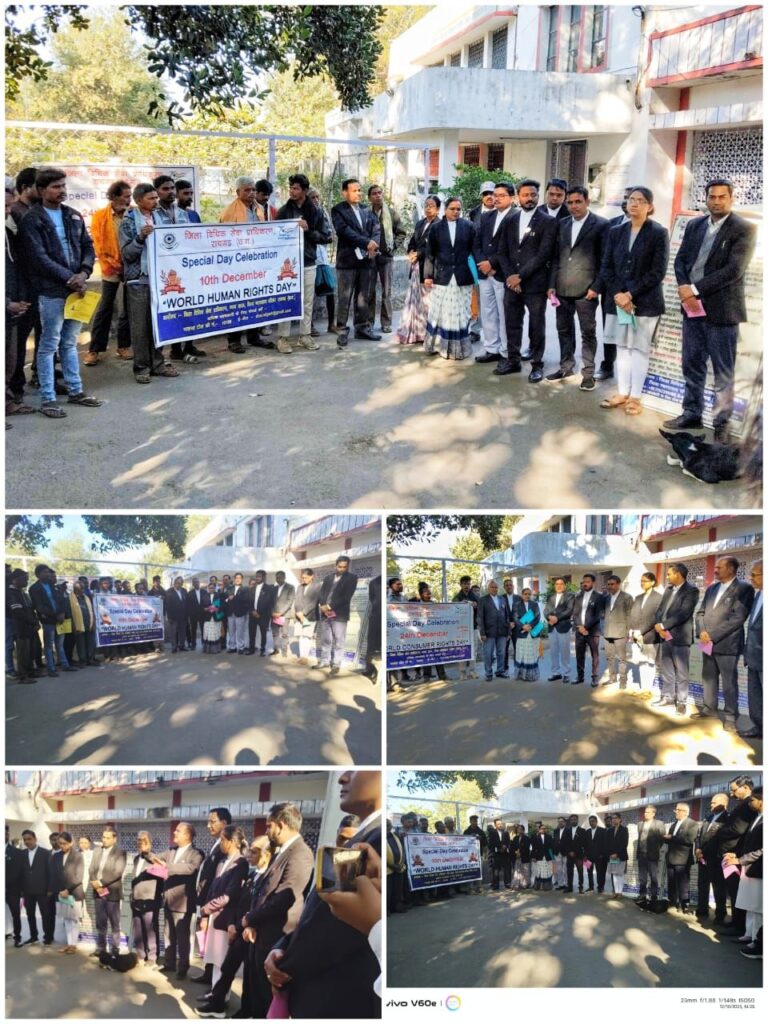 सर्वप्रथम अधिवक्ता संघ के अध्यक्ष श्री कैलाश गुप्ता द्वारा न्यायाधीशों का स्वागत कर उपस्थित आम नागरिकों एवं पक्षकारों को विश्व मानव अधिकार दिवस के महत्व के बारे में बताते हुए मानव के दायित्व के बारे में भी विस्तृत जानकारी दी गई, मानवाधिकार सभी व्यक्तियों को समान रूप से प्राप्त होते हैं, चाहे उनकी जाति, धर्म, भाषा, लिंग, वर्ग या राष्ट्रीयता कुछ भी हो। आगे उन्होंने विधिक सेवा प्राधिकरण निशुल्क कानूनी सहायता के विषय पर भी जानकारी दिए।