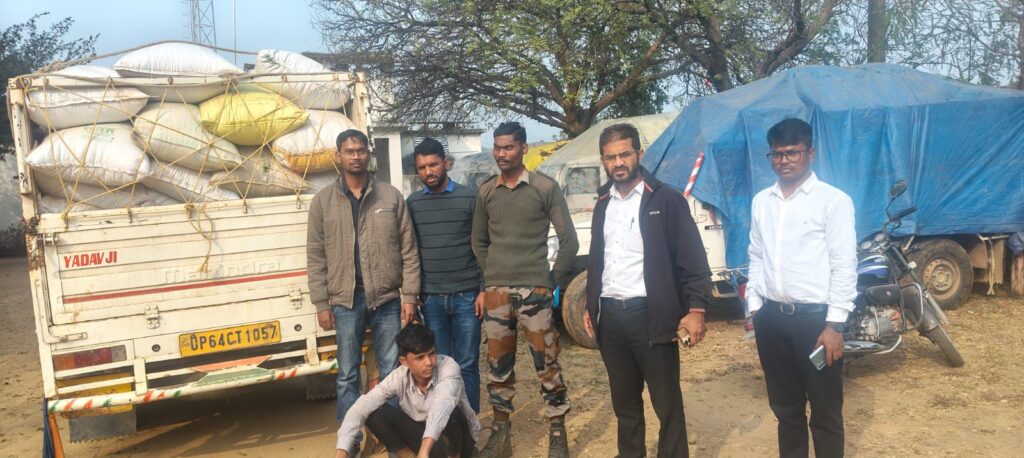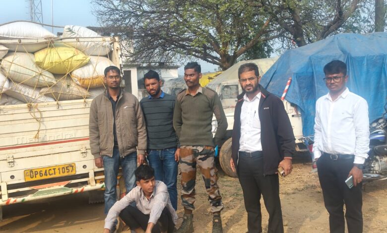 1 ट्रक,3 पिकअप वाहन के साथ पकड़ा गया 214 बोरी अवैध धान