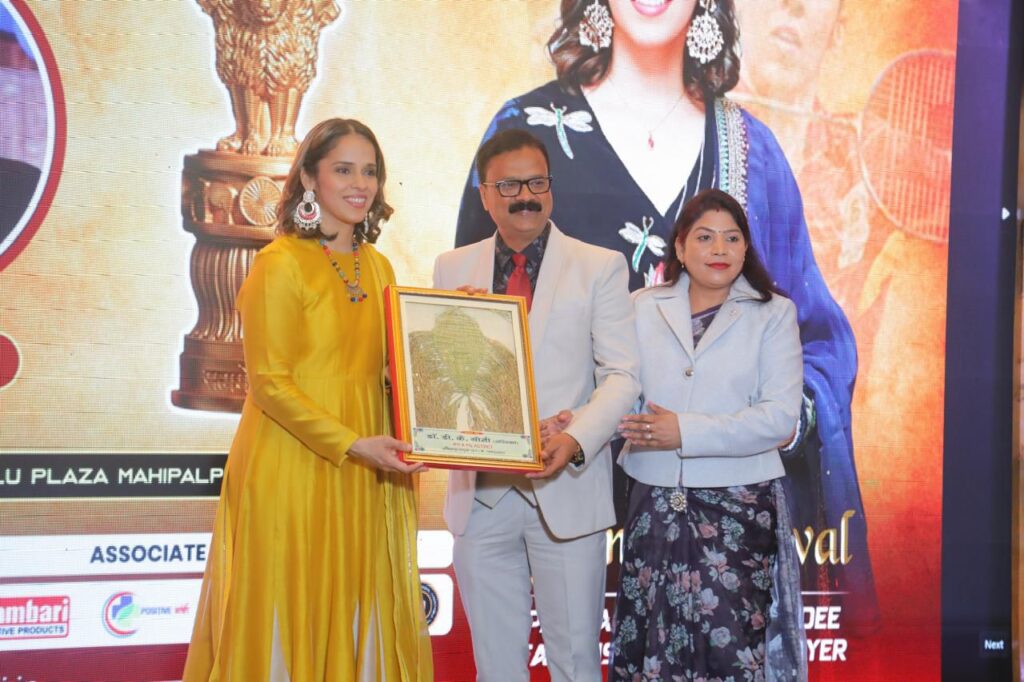 वर्ल्ड चैंपियन पद्म भूषण और पद्म साइना नेहवाल के कर कमलों से डॉ डी के सोनी सम्मानित