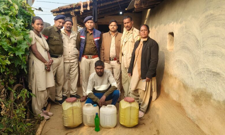 जिला आबकारी अधिकारी ने बताया है कि ग्राम भेस्की निवासी बबलू राम टोप्पो के पास से 18 लीटर अवैध हाथ भट्टी महुआ शराब व 40 किलोग्राम महुआ लाहन जब्त किया गया। उक्त आरोपी के विरूद्ध आबकारी अधिनियम के तहत अपराध प्रकरण कायम कर न्यायिक रिमांड पर जेल भेज दिया गया है।
