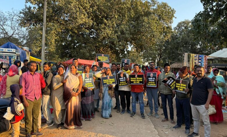 मनरेगा से महात्मा गांधी का नाम हटाए जाने के विरोध में कांग्रेस का धरना