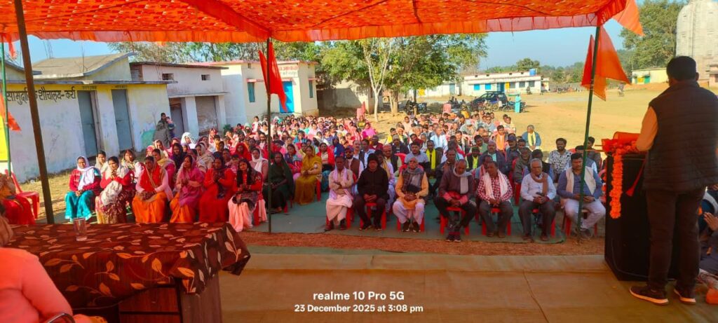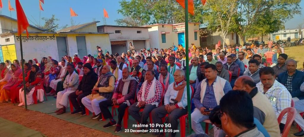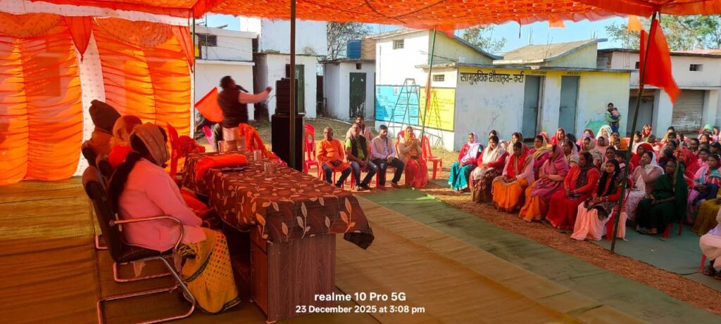 कर्रा ग्राम स्थित शिव मंदिर ग्राउंड में आज दिनांक 23/12/2025 दिन मंगलवार को विशाल हिंदू सम्मेलन का आयोजन किया गया! जिसमे मे हिन्दू एकता, स्वदेशी चिंतन, पर्यावरण संरक्षण तथा सामाजिक समरसता का ओजस्वी, प्रेरणादायी और राष्ट्रबोधक संदेश दिया।