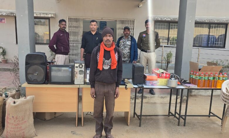 टेबल,एक नग जुमला रकम 27000 रुपए तथा (3) प्राथमिक शाला चंवर सराई से छोटा गैस टंकी चूल्हा सहित एक टेबल, चार नग प्लास्टिक कुर्सी व बर्तन कीमती करीब ₹10000 कुल जुमला कीमती करीब 96400 ₹ चोरी करना स्वीकार किया है। आरोपी के निशानदेही पर उक्त सामग्री की जप्त कर आरोपी को आज दिनांक 6.1 .2026 को गिरफ्तार कर न्यायिक रिमांड पर भेजा गया है।