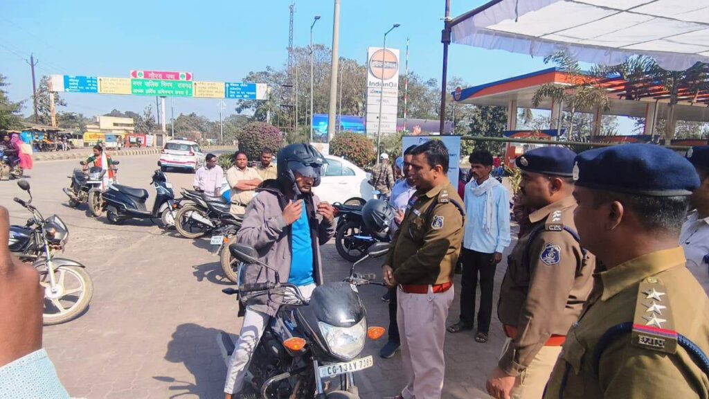 रायगढ़ । राष्ट्रीय सड़क सुरक्षा माह–2026 के अंतर्गत आज दिनांक 06 जनवरी 2026 को यातायात पुलिस रायगढ़ एवं परिवहन विभाग रायगढ़ के संयुक्त तत्वावधान में छातामुड़ा चौक पर हेलमेट जागरूकता को लेकर विशेष शिविर का आयोजन किया गया।