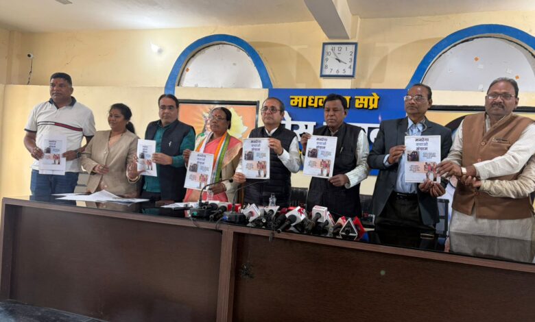 करकेट्टा शैलेश पांडे अध्यक्ष गजमाती भानु और डॉ के के ध्रुव की संयुक्त प्रेस कॉन्फ्रेंस