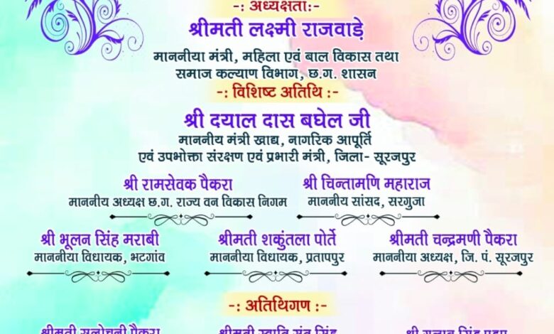 सूरजपुर । विकास कार्यों के शिलान्यास व लोकार्पण कार्यक्रम को लेकर सूरजपुर जिले के भैयाथान विकासखंड अंतर्गत ग्राम चुनगढी में मुख्यमंत्री विष्णु देव साय का 17 जनवरी को आगमन प्रस्तावित है। इस कार्यक्रम में क्षेत्र के विधायक एवं मंत्रीगण अतिथि के रूप में शामिल होंगे। प्रशासन की ओर से कार्यक्रम को लेकर बाकायदा आमंत्रण पत्र छपवाकर भेजे गए, लेकिन इन्हीं आमंत्रण पत्रों में प्रशासन की एक बड़ी चूक सामने आ गई है।
