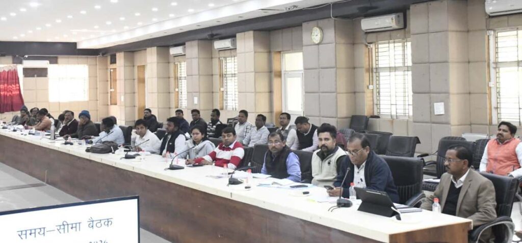 बलरामपुर, 20 जनवरी 2026/ कलेक्टर श्री राजेंद्र कटारा की अध्यक्षता में संयुक्त जिला कार्यालय के सभाकक्ष में समय-सीमा की बैठक आयोजित हुई। बैठक में कलेक्टर श्री कटारा ने सरगुजा ओलंपिक, गणतंत्र दिवस, धान खरीदी, स्वास्थ्य, आयुष्मान कार्ड सहित विभिन्न योजनाओं, राजस्व प्रकरणों की समीक्षा कर प्रगति लाने आवश्यक दिशा-निर्देश दिए।