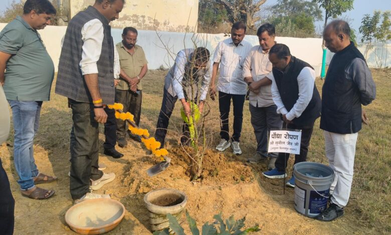 घरघोड़ा नगर का सबसे पुराने मुक्ति धाम (स्मृतिवाटिका) संवरने लगा संभागायुक्त सुनील जैन ने किया पौध रोपण