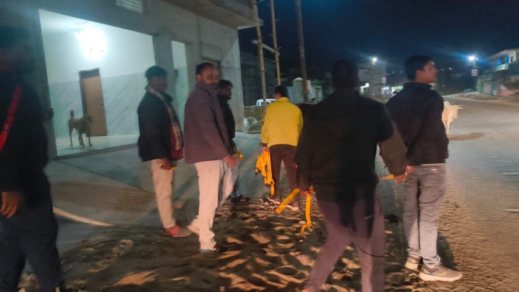 युवा जनसेवा संगठन ने सड़कों पर रह रहे गायों को पहनाया रेडियम बेल्ट