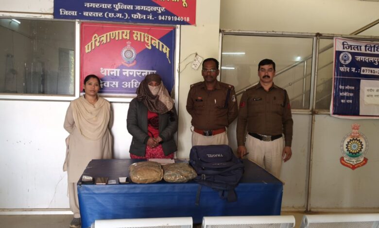 जगदलपुर में गांजा तस्करी पर पुलिस की बड़ी कार्रवाई: नगरनार थाना क्षेत्र से महिला आरोपी गिरफ्तार, भारी मात्रा में गांजा बरामद