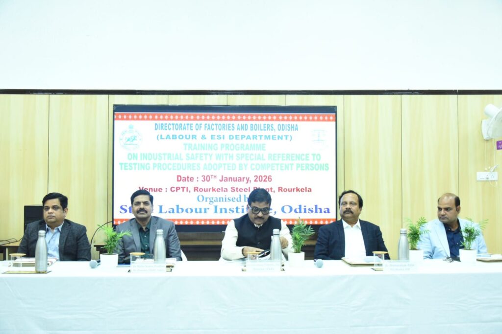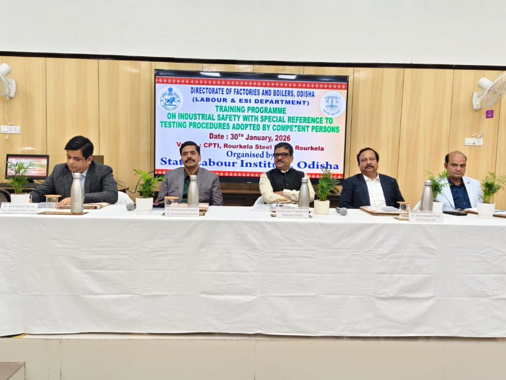 इसी क्रम में राज्य श्रम विभाग के सहयोग से राउरकेला (ओडिशा) स्थित राउरकेला इस्पात संयंत्र के लॉगिंग एवं विकास केंद्र में 30 जनवरी 2026 को “औद्योगिक सुरक्षा योग्य अधिकारियों द्वारा अपनाई जाने वाली परीक्षण प्रक्रियाएं” विषय पर एक राज्य स्तरीय प्रशिक्षण कार्यशाला का सफल आयोजन किया गया। कार्यशाला का उद्देश्य औद्योगिक परीक्षण प्रणाली को मजबूत बनाना और दुर्घटनाओं की संभावनाओं को न्यूनतम करना रहा।