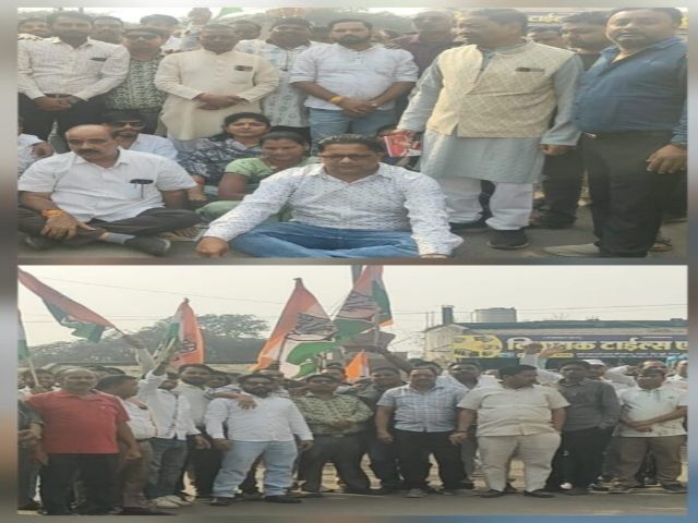 मनरेगा बचाओ कार्यक्रम के तहत कांग्रेस का शांतिपूर्ण चक्काजाम
