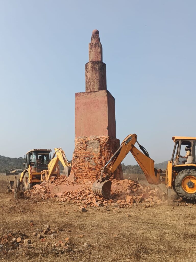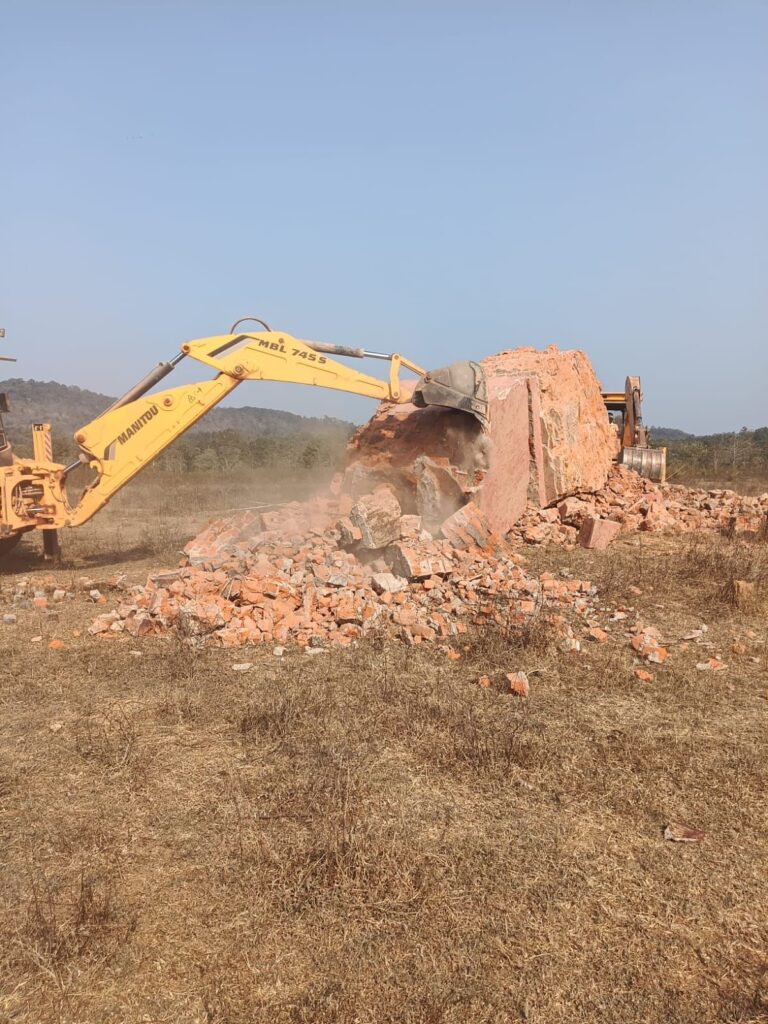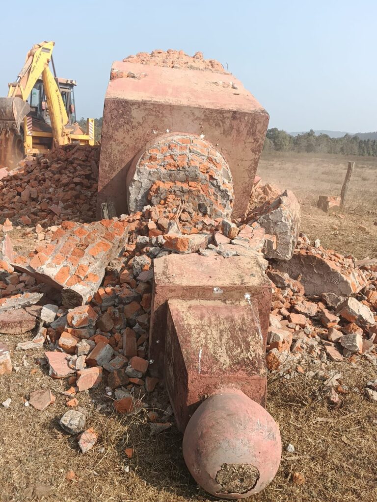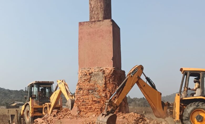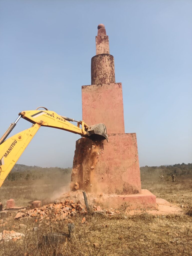 नारायणपुर पुलिस एवं 41 BN आई.टी.बी.पी. के जवानों ने नक्सलियों के अघोषित राजधानी कुतुल के भीतर ग्राम फरसगांव में निर्मित विशालकाय नक्सल स्मारक को किया जमींदोज