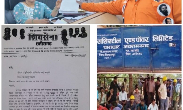 शिवसेना कामगार सेना के संभागीय अध्यक्ष राधेश्याम खांडेकर ने बताया ग्राम वासियो के हित एवं सुरक्षा को देखते हुये उपरोक्त कंपनीयो एवं अन्य भारी वाहनो के आवागमन पर रोक लगाया जाए एवं उचित कार्यवाही हेतु मांग की गई मस्तूरी तहसीलदार को ज्ञापन सौंप कर उचित कार्यवाही नही किये जाने की स्थिती पर ग्राम वासीयो एवं छ०ग० शिव सेना के सदस्यो के द्वारा चक्का जाम या धरना प्रदर्शन किया जायेगा जिसकी जिम्मेदारी शासन प्रशासन की होगी।