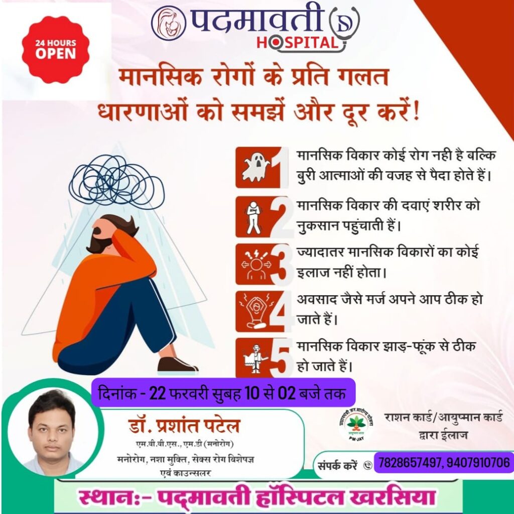 पदमावती हॉस्पिटल खरसिया में 22 फरवरी को खुल रहा मानसिक स्वास्थ्य विशेषज्ञ कैंप