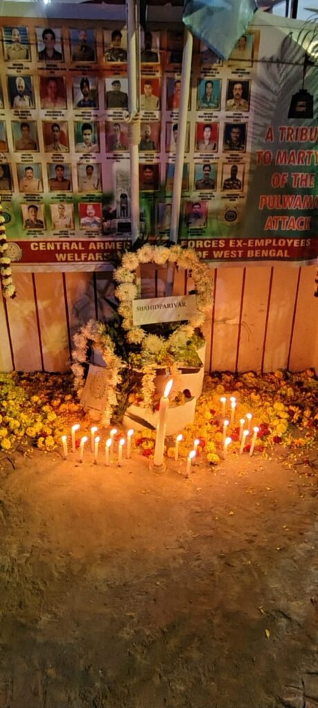 यहाँ हम सबने उस दुखद घटना और उसके बाद के घटनाक्रमों को याद करते हुए सेंट्रल आर्म फोर्स एक्स सर्विस मैन वेलफेयर एसोसिएशन प. बंगाल के बैनर तले इस कार्यक्रम का आयोजन किया था। जिसमें बड़ी संख्या में एक सर्विस मेन के अलावा पुलवामा शहीद परिवार के सदस्य भी शामिल हुए।