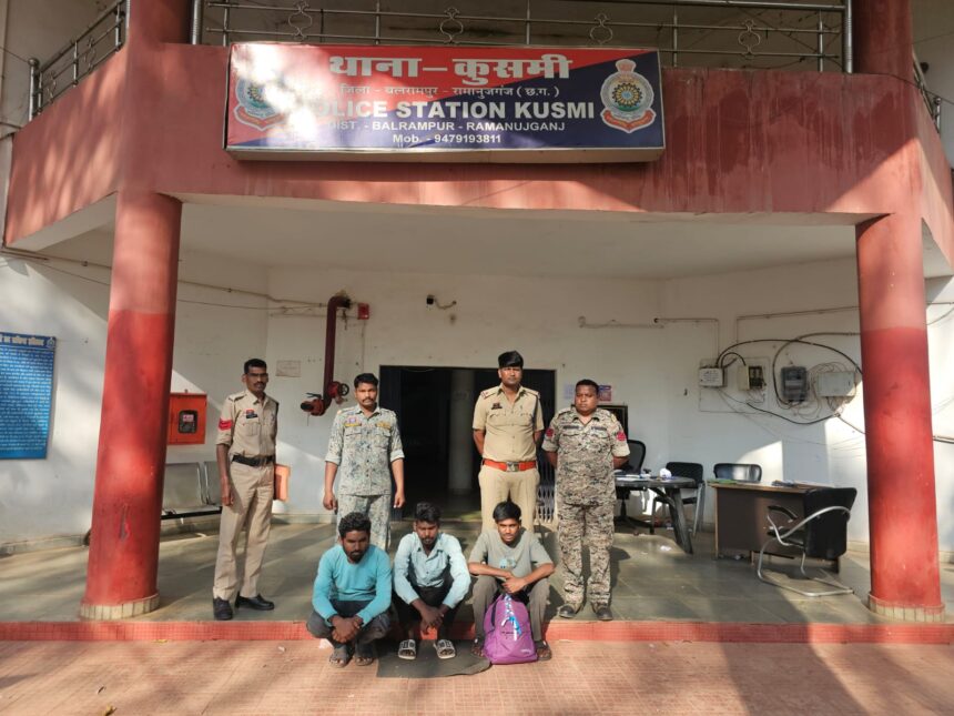 कुसमी, बलरामपुर – नशे के कारोबार पर अंकुश लगाने के लिए कुसमी पुलिस ने बड़ा कदम उठाया है। दिनांक 08 मार्च 2026 को मुखबिर की सूचना पर पुलिस टीम ने कुसमी-कोरंधा रोड पर रेड कार्रवाई की। सूचना मिली थी कि मनेश कुमार प्रजापति अपने दो साथियों के साथ झारखंड के महुआडांड़ की ओर से नशीली इंजेक्शन लेकर आ रहे हैं।