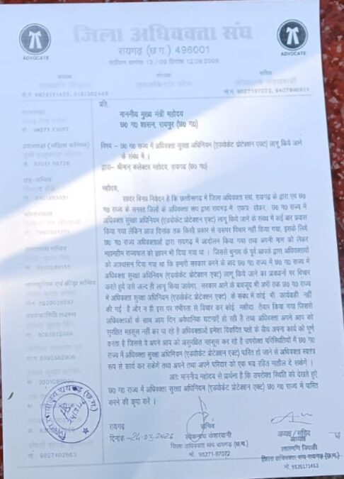 रायगढ़ में अधिवक्ताओं की बड़ी मांग: सुरक्षा कानून और स्थाई कमिश्नर कोर्ट की स्थापना पर जोर