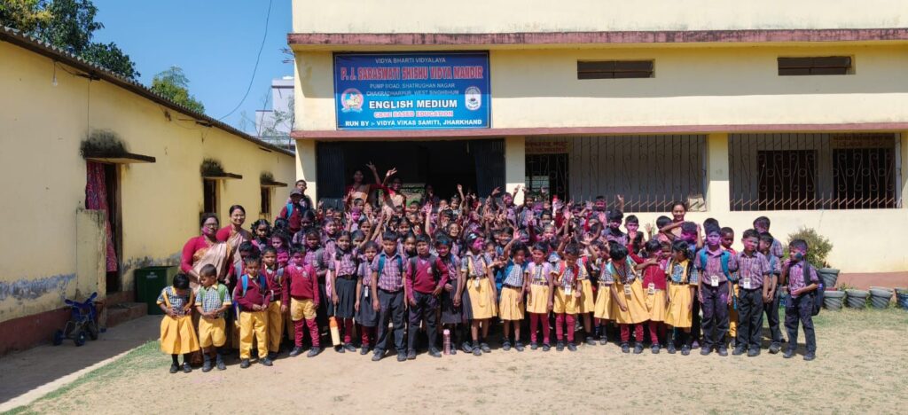 चक्रधरपुर शहर के पंप रोड स्थित पद्मावती जैन सरस्वती शिशु विद्या मंदिर (इंग्लिश मीडियम) में होली मिलन समारोह का भव्य आयोजन हर्षोल्लास और पारंपरिक उत्साह के साथ संपन्न हुआ। कार्यक्रम के दौरान विद्यालय परिसर अबीर-गुलाल और उमंग के रंगों से सराबोर नजर आया।