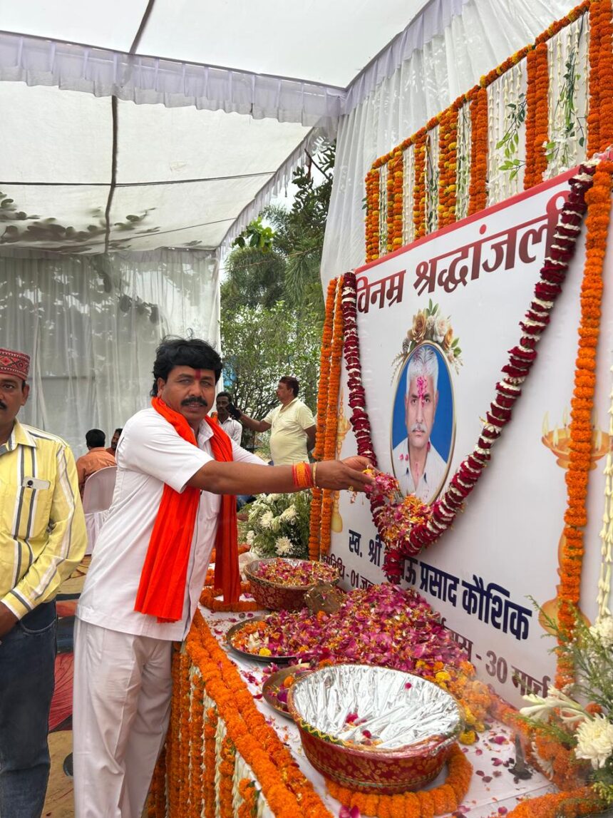 छाया विधायक महेश साहू के साथ बाल कृष्ण साहू, हितेश सोनू द्विवेदी, नितेश बरेठ सहित अन्य कार्यकर्ता एवं सहयोगी भी कार्यक्रम में शामिल हुए। सभी ने मिलकर स्वर्गीय भुलाऊं प्रसाद कौशिक को श्रद्धांजलि अर्पित की और परिवार के प्रति अपनी संवेदनाएं प्रकट कीं।