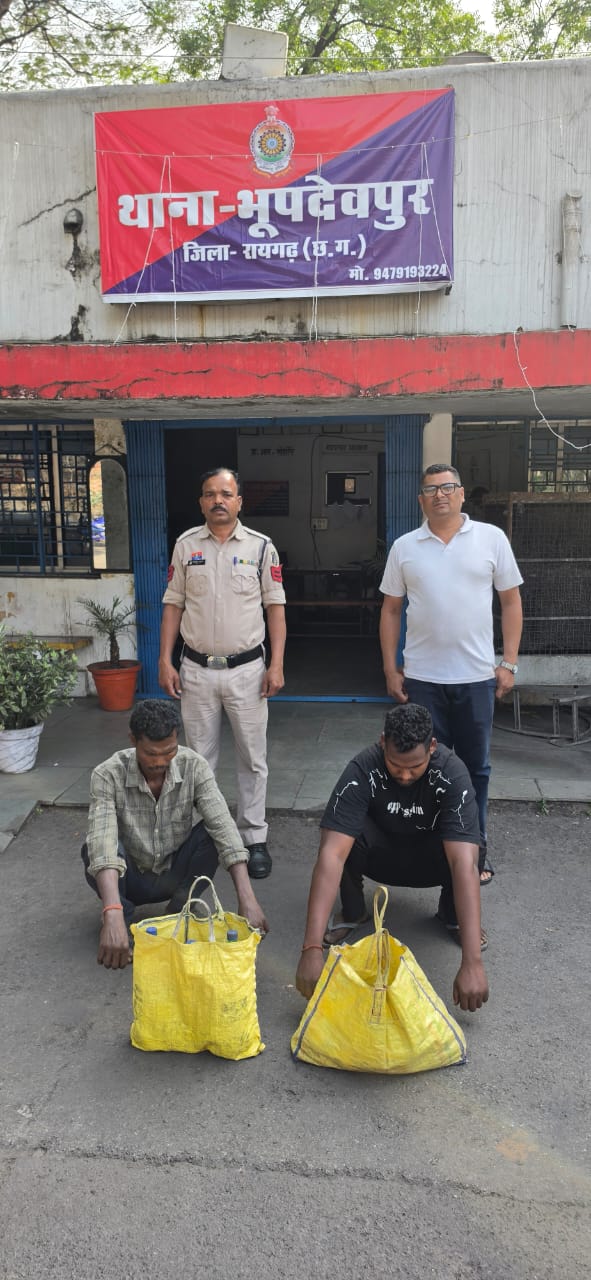 भूपदेवपुर थाना क्षेत्र में पुलिस ने ग्राम रसियामुड़ा और दर्रामुडा में सघन कार्रवाई करते हुए अवैध महुआ शराब निर्माण की भट्ठी को नष्ट किया और बड़ी मात्रा में महुआ पास का नष्टीकरण किया। एक आरोपी को कच्ची महुआ शराब के साथ गिरफ्तार किया गया, जबकि एक अन्य आरोपी को अंग्रेजी शराब के साथ पकड़ा गया। दोनों के विरुद्ध आबकारी एक्ट के तहत मामला दर्ज किया गया।