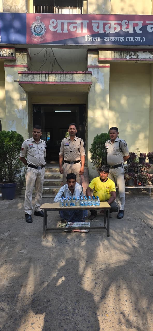 चक्रधरनगर पुलिस ने अभियान की शुरुआत करते हुए ग्राम बंगुरसिया, गोवर्धनपुर सहित विभिन्न स्थानों पर कार्रवाई कर छह आरोपियों को गिरफ्तार किया। आरोपियों के कब्जे से अलग अलग मात्रा में कच्ची महुआ शराब जब्त की गई। इसके साथ ही पंडरीपानी क्षेत्र में मोटरसाइकिल से शराब परिवहन करते दो अन्य आरोपियों को भी पकड़ा गया, जिनके पास से देशी मदिरा बरामद की गई। सभी आरोपियों के विरुद्ध आबकारी एक्ट के तहत प्रकरण दर्ज कर कार्रवाई की गई।