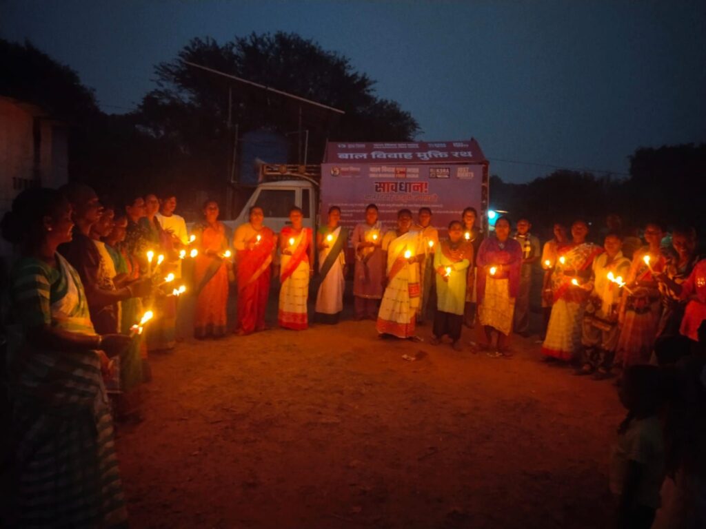 इसके पश्चात बाल विवाह मुक्ति रथ पुनः लौड़िया गांव पहुंचा, जहां स्वयं सहायता समूह (SHG), महिलाओं और किशोरी बालिकाओं ने बाल विवाह के खिलाफ शपथ ली। कार्यक्रम के अंत में महिलाओं एवं SHG समूहों द्वारा कैंडल मार्च निकालकर समुदाय को बाल विवाह रोकने तथा बेटियों के अधिकारों की रक्षा करने का संदेश दिया गया।
