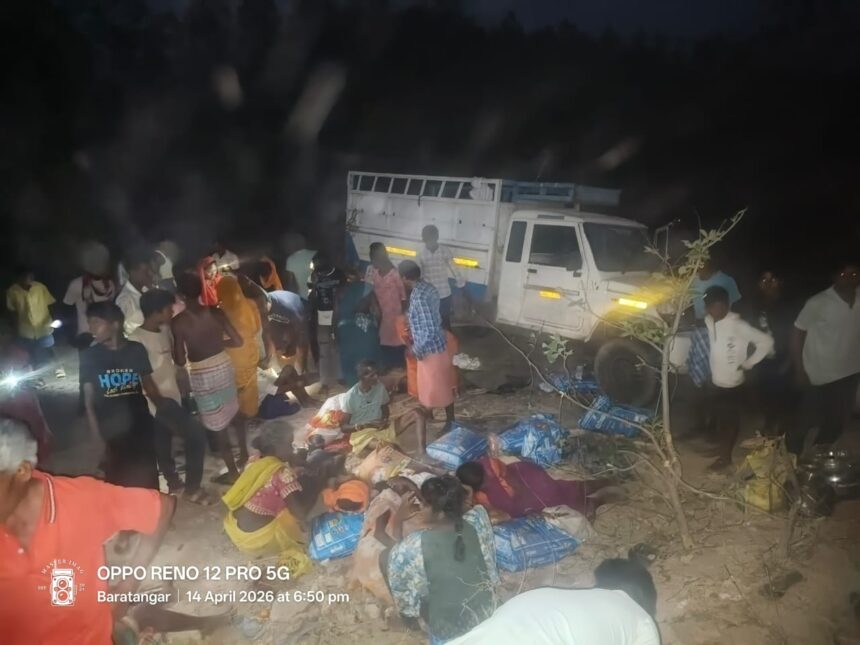 लैलूंगा ब्लाक के गंजपुर ग्राम पंचायत के मड़ियाकछार गांव में पिकअप पलटी