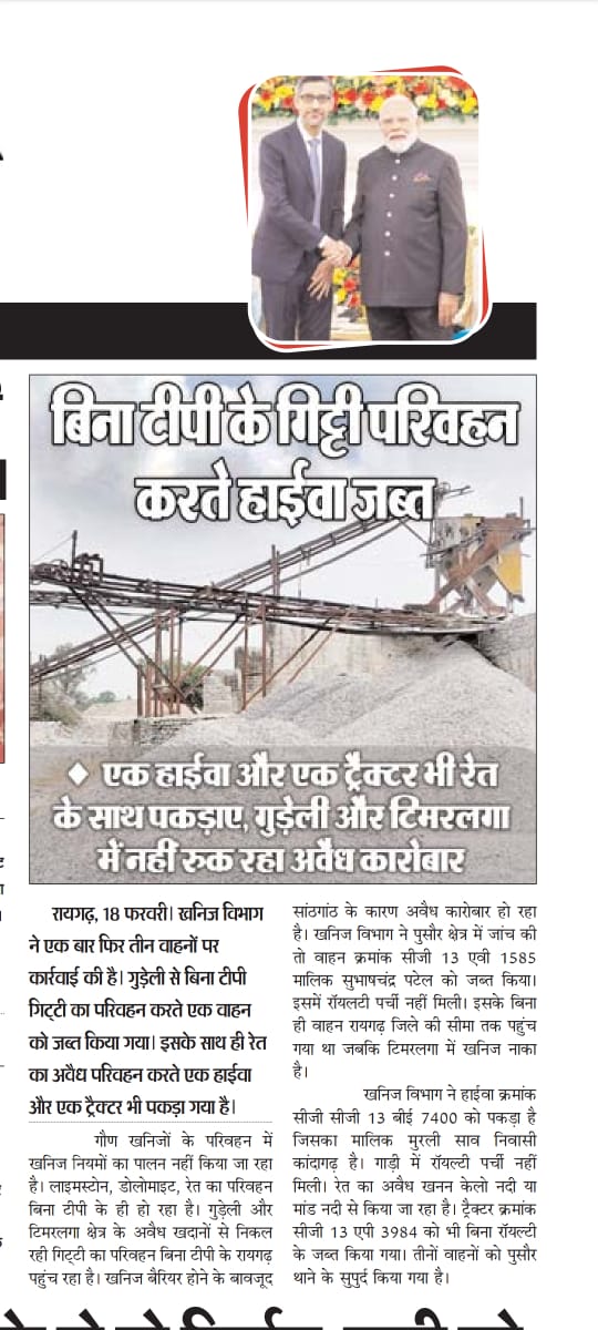 खनिज जांच चौकी टिमरलगा से बिना टीपी के रोज कई दर्जन गाड़ी पारअजब गजब खबर सामने आई है कि सारंगढ़ बिलाईगढ़ जिले में हो रहे अवैध परिवहन जैसे ही रायगढ़…