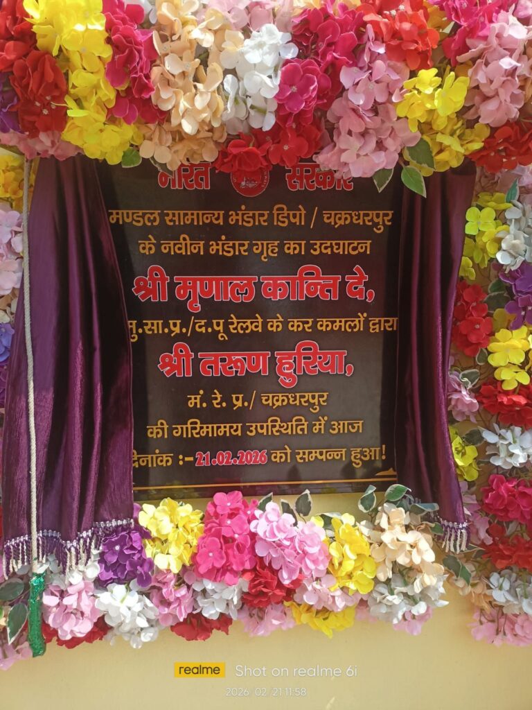 चक्रधरपुर । दक्षिण पूर्व रेलवे के प्रधान मुख्य सामग्री प्रबंधक मृणाल कांति दे ने बुहुप्रतिक्षित मंडल सामान्य भंडार डिपो चक्रधरपुर ने नए भवन का बतौर मुख्य अतिथि फीता काटकर उद्घाटन किया। इस अवसर पर चकधरपुर के डीआरएम तरुण हुरिया, रेलवे मुख्यालय गार्डनरिच के मुख्य सामग्री प्रबंधक सोमनाथ हांसदा, उपमुख्य सामग्री प्रबंधक (सामान्य भंडार डिपो)  सत्यपाल सन्नू, सुधीर कुमार सिंह (वर्कशॉप) सहित अन्य अधिकारी उपस्थित रहे।