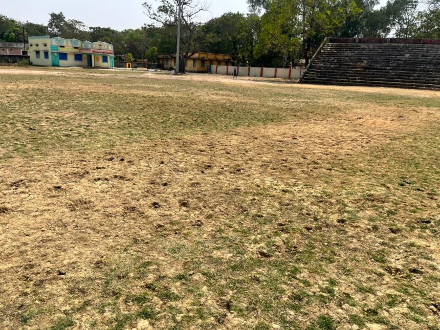 सूखी घास और खराब बोरिंग से मैदान की हालत दयनीय