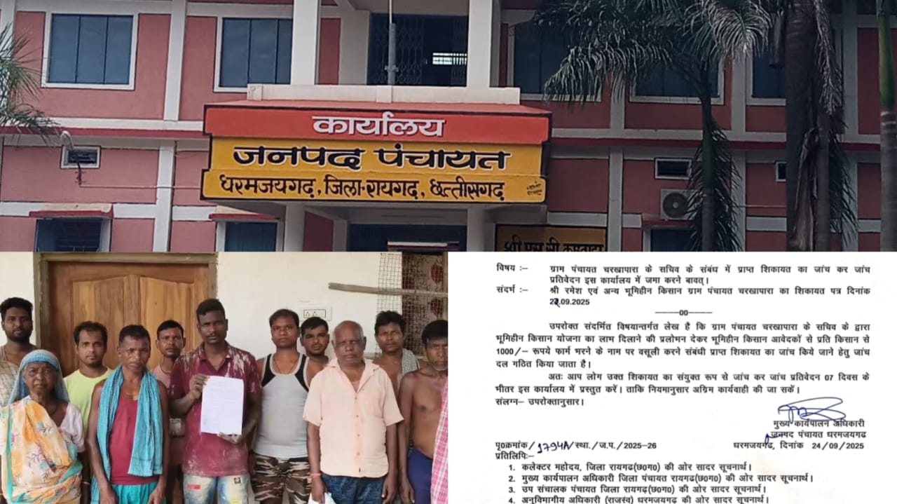 भूमिहीन किसान योजना में अवैध वसूली का आरोप धरमजयगढ़। ग्राम पंचायत चरखापारा…
