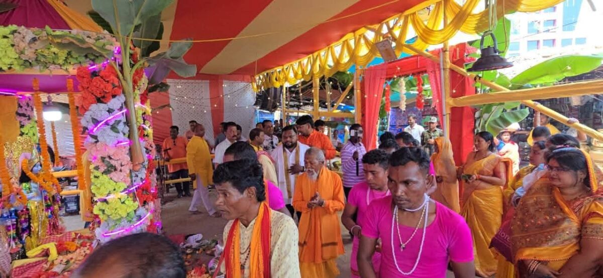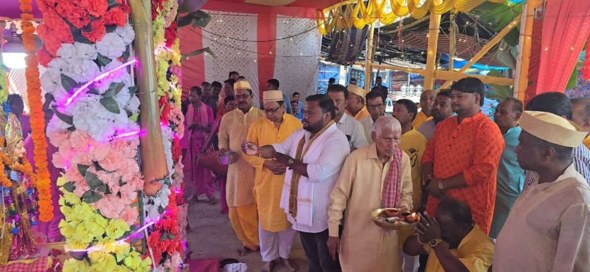 चक्रधरपुर। गुदड़ी बाजार में आयोजित पारंपरिक चैत्र नवरात्र हरिनाम संकीर्तन का शुभारंभ इस वर्ष भी भक्ति और श्रद्धा के साथ किया गया। कार्यक्रम के पहले दिन नगर परिषद अध्यक्ष सन्नी उरांव एवं उपाध्यक्ष विजय साव ने पहुंचकर भगवान राम और कृष्ण की विधिवत पूजा-अर्चना की तथा परिक्रमा कर आशीर्वाद प्राप्त किया।